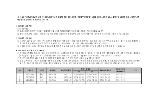 [2025-04-29] 기한이익상실 예정 고객 리스트