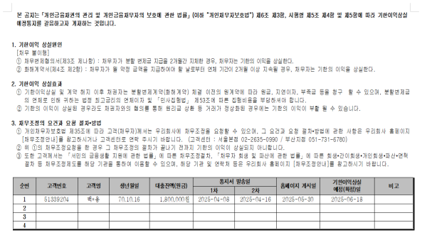 - 이전글[2025-06-05] 기한이익상실 예정 고객 리스트 25.06.05